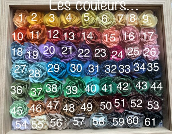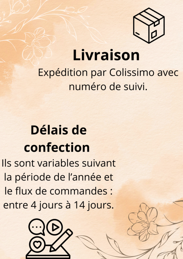 Elle est personnalisable tant les couleurs des fleurs que l’écriture et la couleur de celle-ci.