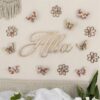 Petit nom en bois contreplaqué et 14 décorations fleuries